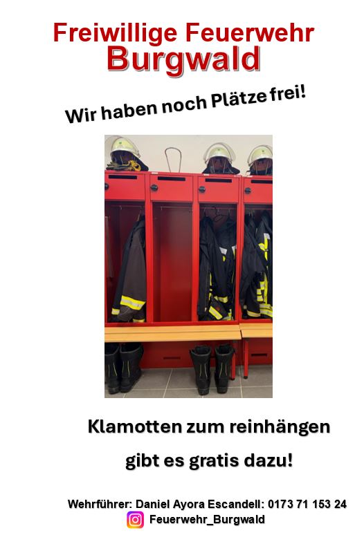 Die Freiwillige Feuerwehr Burgwald OT Burgwald besteht zur Zeit aus 30 Aktiven Mitgliedern in der Einsatzabteilung, 20 Jugendfeuerwehr Mitglieder, 12 Mitglieder der Ehren- und Altersabteilung und 85 passive Vereinsmitglieder.